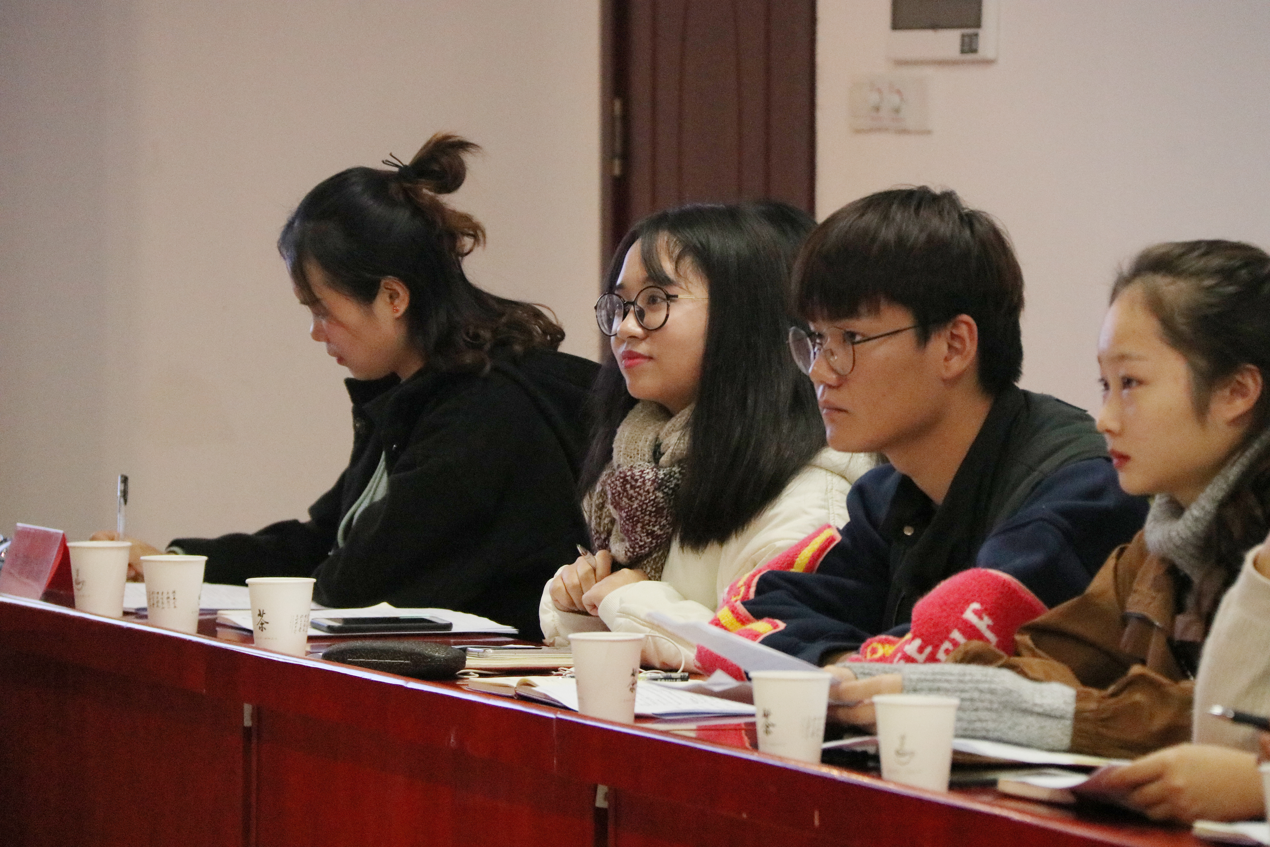 待全部人员入座后,学生工作经验交流会正式开始。会议伊始,郑帅君代表法管学院表达对信息学院参会成员到来的欢迎,并简要介绍了法管学院团委学生会的整体组织构架。之后,法管学院团委学生会各部门分别详述本部门的工作机制,并耐心解答信息学院各部门提出的问题。其中,学习部对组织学院进行英语四六级学习的方式进行了分享,文艺部则讲解了啦啦队的组建和鼓励方式,广宣部介绍了新媒体运营素材获取管理的方法。